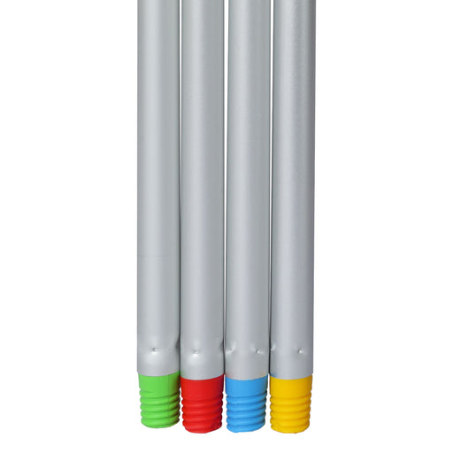 A lightweight aluminum handle. Color-coded grip. Heavy duty. It features a threaded fitting for secure attachment. Screw Bottom. Size: 130cm